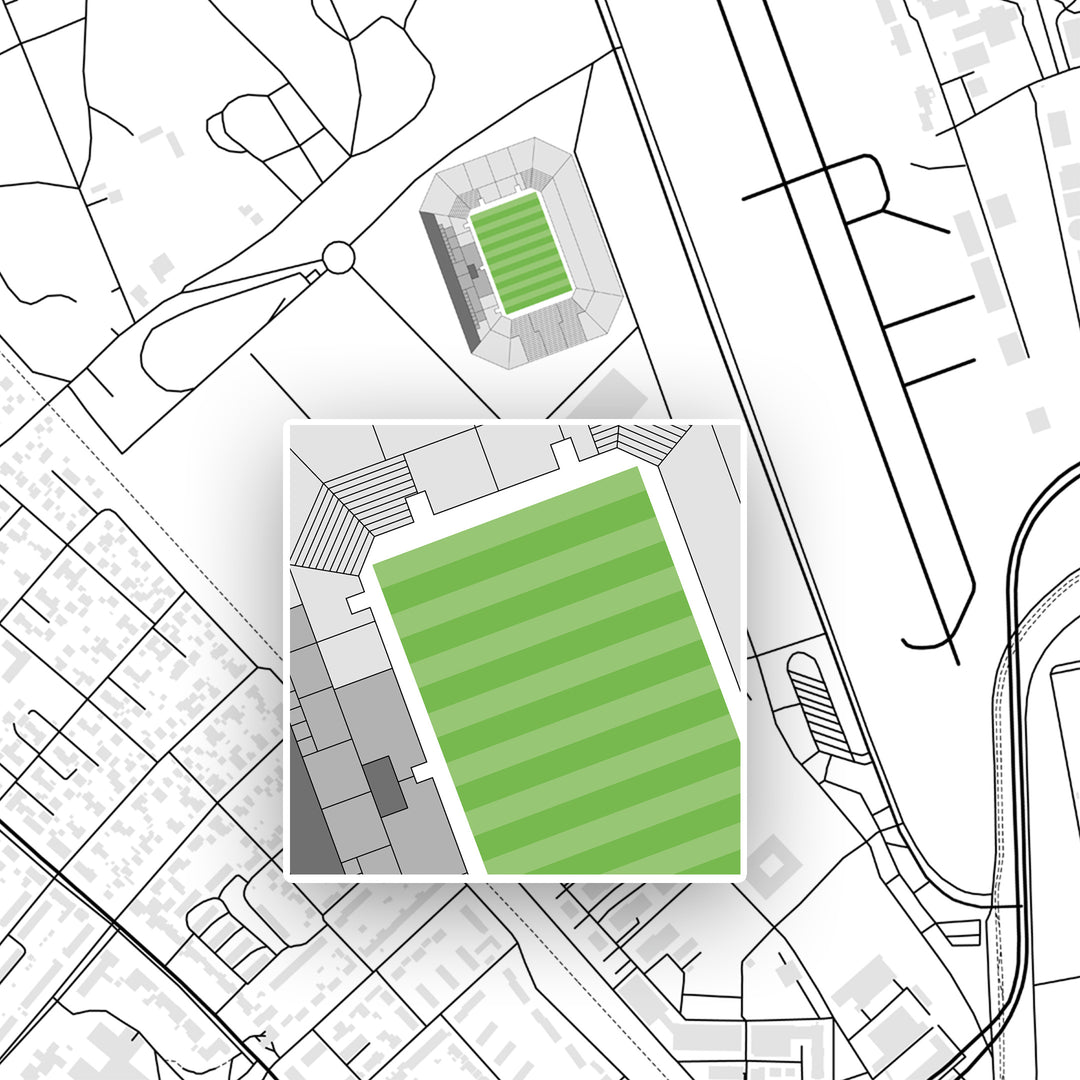 Die besondere Atmosphäre deines Lieblingsstadions eingefangen als kunstvoller Stadtplan in atemberaubender Qualität.