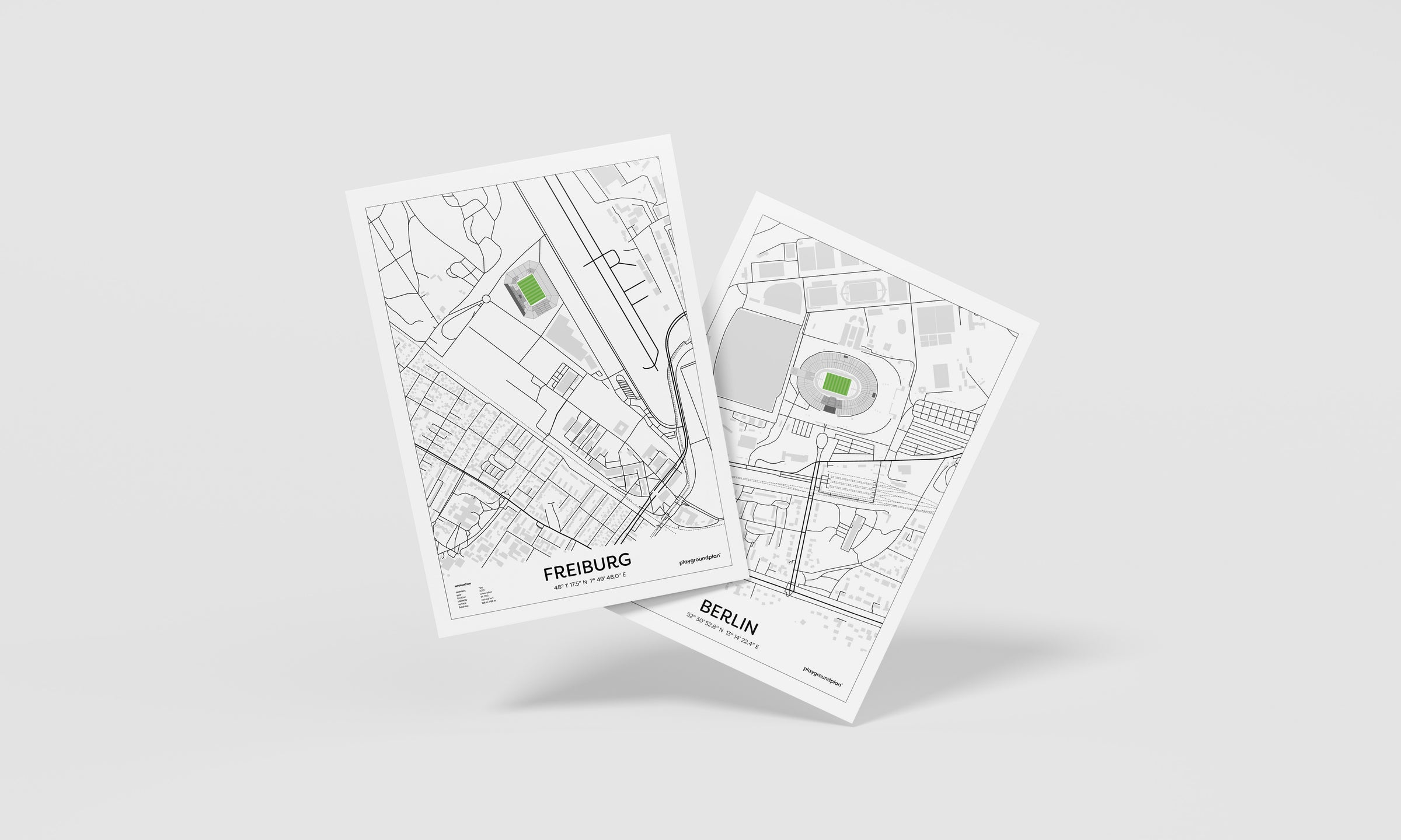 Wir arbeiten mit Druckereien zusammen, die lokal produzieren und versuchen so Lieferwege und Transporte möglichst effizient zu gestalten. Außerdem sind unsere Stadion-Maps auf FSC-zertifiziertem Papier gedruckt.